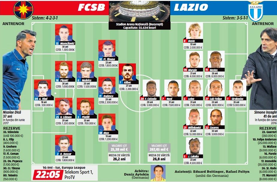 INTERNATIONAL  »  EUROPA LEAGUE  »  FCSB - LAZIO, AZI, 22:05, PRO TV, TELEKOM, GSP.RO