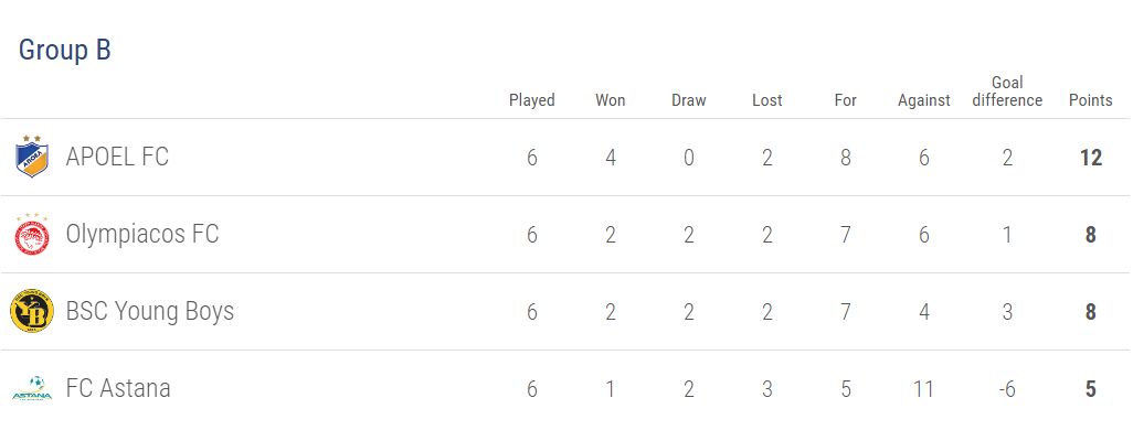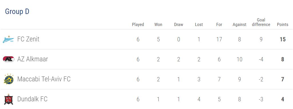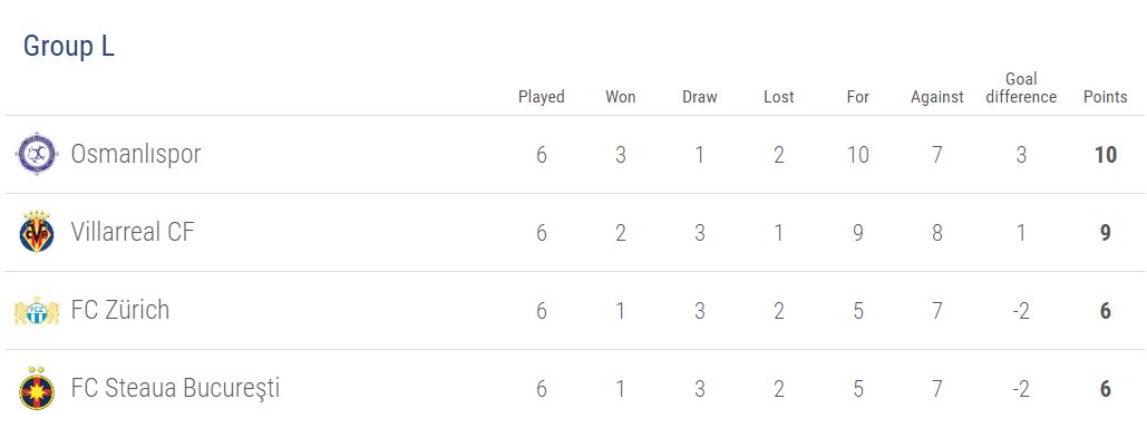 De pe primul loc: Fenerbahce, APOEL, Saint-Etienne, Zenit, AS Roma, Șahtior, Fiorentina, Osmanlispor, Ajax, Sparta Praga, Schalke 04