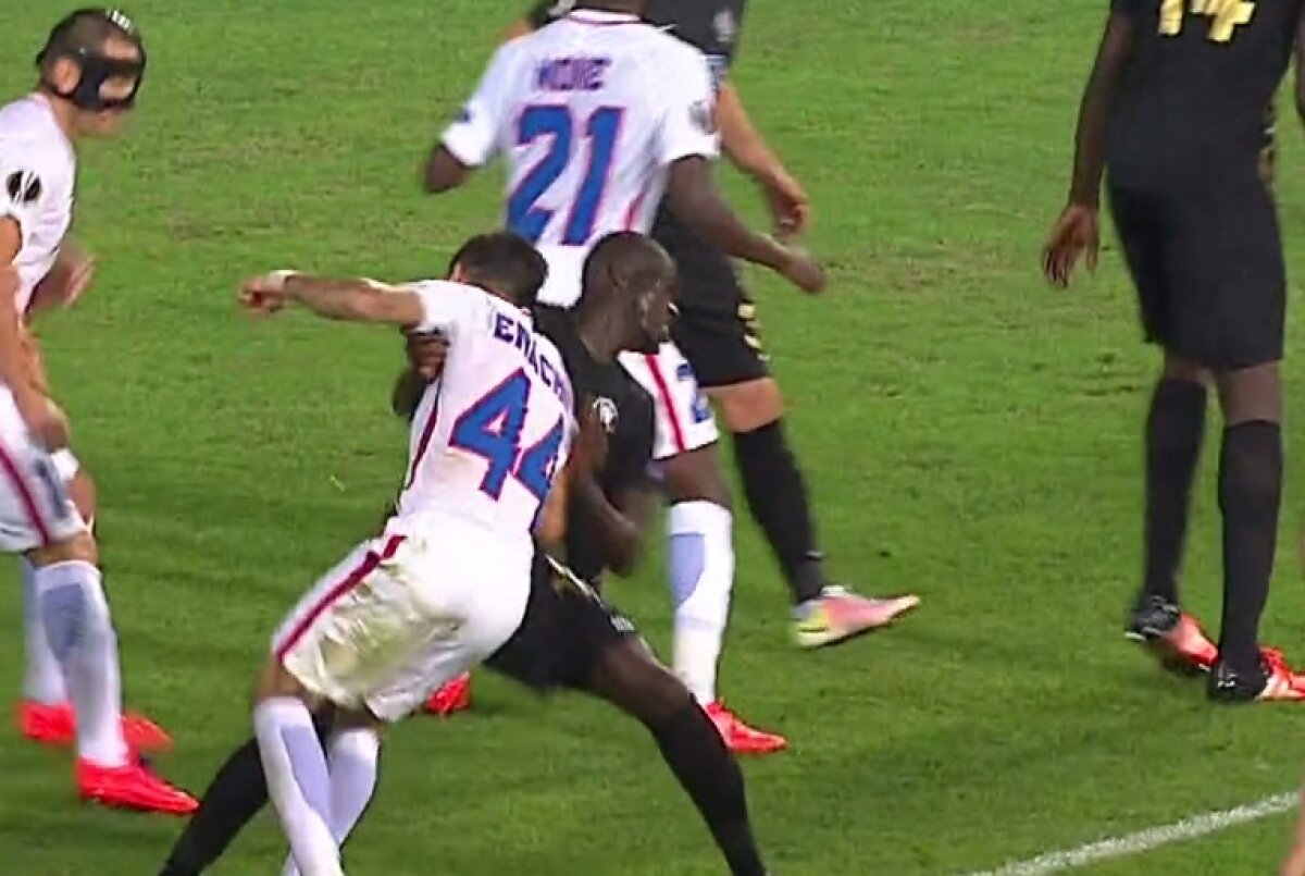 Enache se afla în careul turcilor, la o fază fixă, și l-a lovit cu capul în piept pe Ndiaye, chiar sub ochii arbitrului. Fundașul dreapta a încercat să scape de marcajul adversarului, dar nu a putut și și-a pierdut cumpătul.