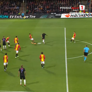 Min. 39: Olandezii sunt periculoși. FCSB apelează la minge lungă pentru a ieși din defensivă, însă Alibec nu are succes la duelurile la cap.
