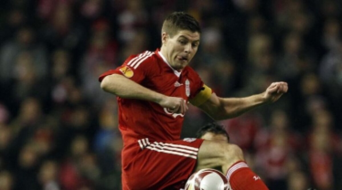min 19 - Riera centrează perfect de pe stînga pentru Gerrard, care trimite cu capul pe lîngă