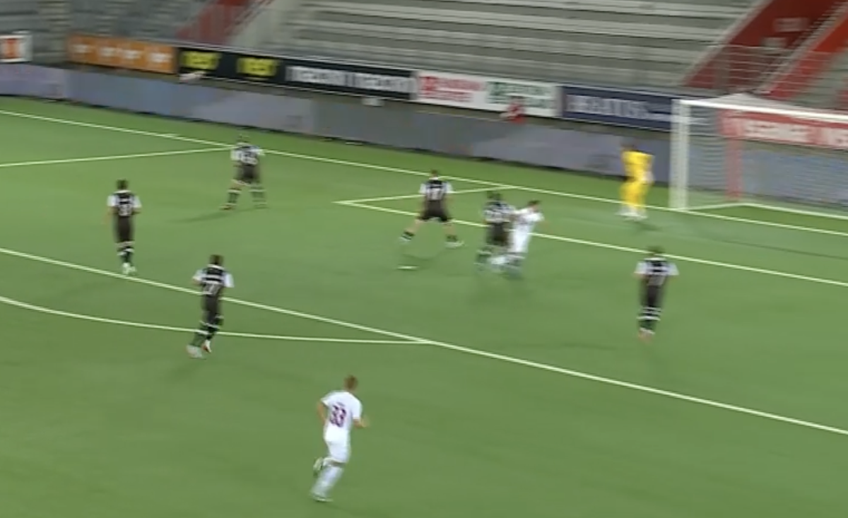: Louis Munteanu a obținut un penalty în Lugano – CFR Cluj // FOTO: Captură PrimaSport