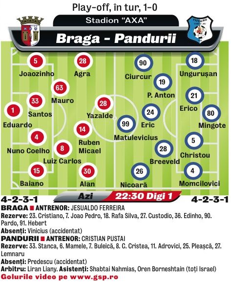 Braga - Pandurii (ora 22:30, Digi Sport 1, în tur 1-0)