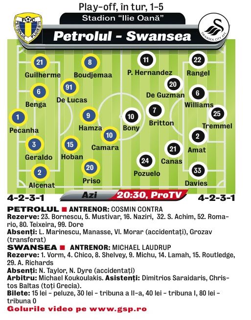 Petrolul - Swansea (ora 20:30, Pro TV, în tur 1-5)