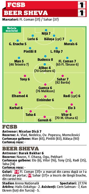 FCSB s-a calificat în primăvara europeană după egalul de pe teren propriu cu Hapoel Beer Sheva, scor 1-1, iar unul dintre jucătorii remarcați a fost Constantin Budescu.