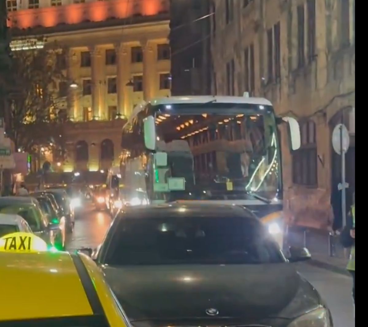 : Un BMW pe avarii a blocat autocarul lui Manchester United în Capitală / Sursă foto: Twitter