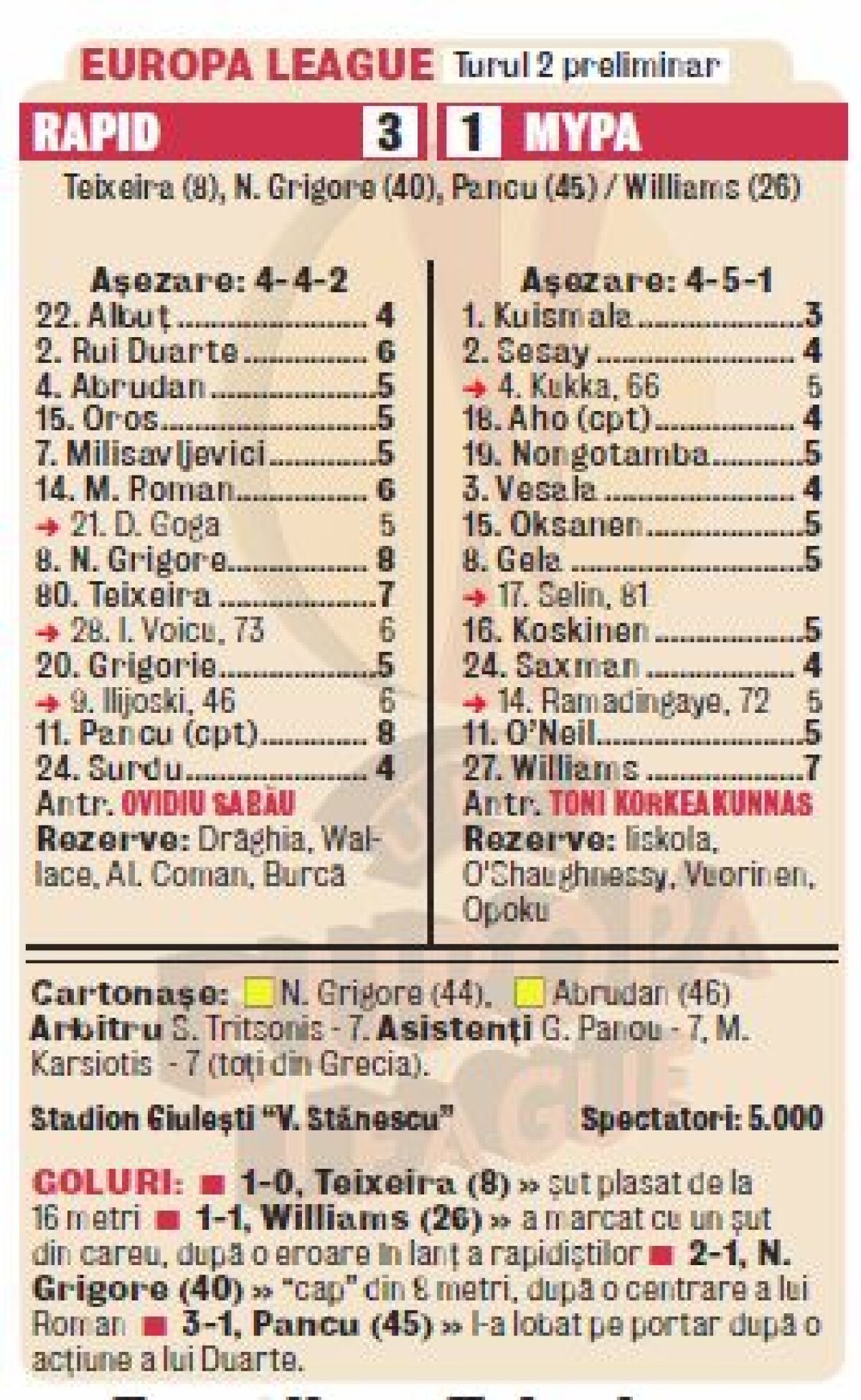 VIDEO + FOTO Suflu nou, acelaşi stil » Rapid a tremurat o repriză în faţa finlandezilor de la MYPA, dar s-a impus în final cu 3-1