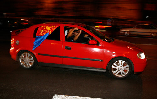 Autostrada A1 a fost luată cu asalt de fanii Stelei din ţară, care vin cu maşinile personale sau cu microbuzele spre Capitală. Sute de maşini cu însemnele "roş-albaştrilor" se îndreaptă spre Bucureşti, în ciuda vremii şi a drumurilor mai mult sau mai puţin practicabile.