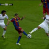 Un articol penibil. Sunt 3 poze, de la diferite surse, si toate arata clar contactul dintre ghetele celor doi jucatori. Doar ca poza 3, cea "corecta" din punctul tau de vedere nu arata momentul contactului ci este ori inainte de contact ori dupa, PENTRU CA MINGEA NU MAI ESTE LANGA GHETELE JUCATORILOR. In poza 3 NU SE VEDE daca atinge tibia lui Alves, decat daca te dai destept si vezi 3D pe o poza 2D :)) Si SIGUR nu atinge tibia lui Alves, pentru ca nu avea cu in aceasi miscare sa loveasca si balonul, si gheata lui Alves ( cum se vede clar in primele 2 poze ) si tibia lui Alves. Incercati si voi acasa sa loviti dintr-o miscare piciorul de la scaun in 3 locuri :)