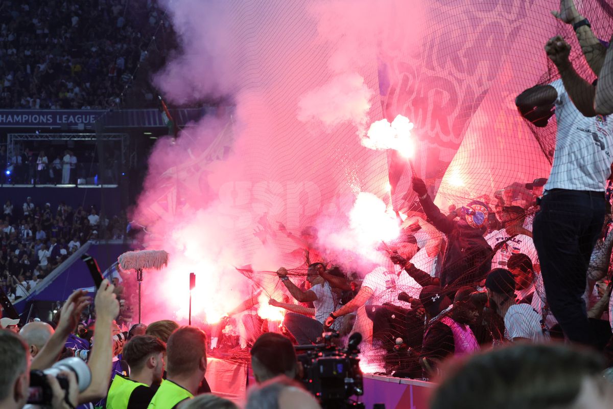 : Show pirotehnic al fanilor celor de la PSG, în finala Ligii Campionilor. Foto: Ionuț Iordache (GSP.RO)