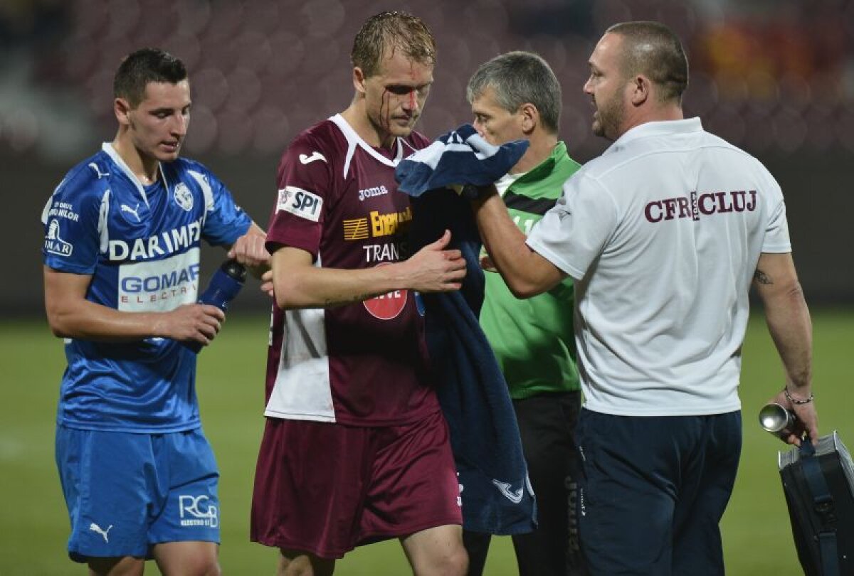 Golgeterul clujenilor, Pantelis Kapetanos, are din nou probleme înaintea unei confruntări de Champions League. Grecul s-a ales cu arcada spartă după lovitura primită de la ivorianul Canon, în prima repriză a partidei cu Gloria Bistriţa (5-1). Şi înainte de meciul cu Braga prezenţa grecului în teren era incertă, din cauza durerilor la glezna dreaptă. Atacantul a strîns din dinţi în Portugalia şi a intrat în teren din primul minut.