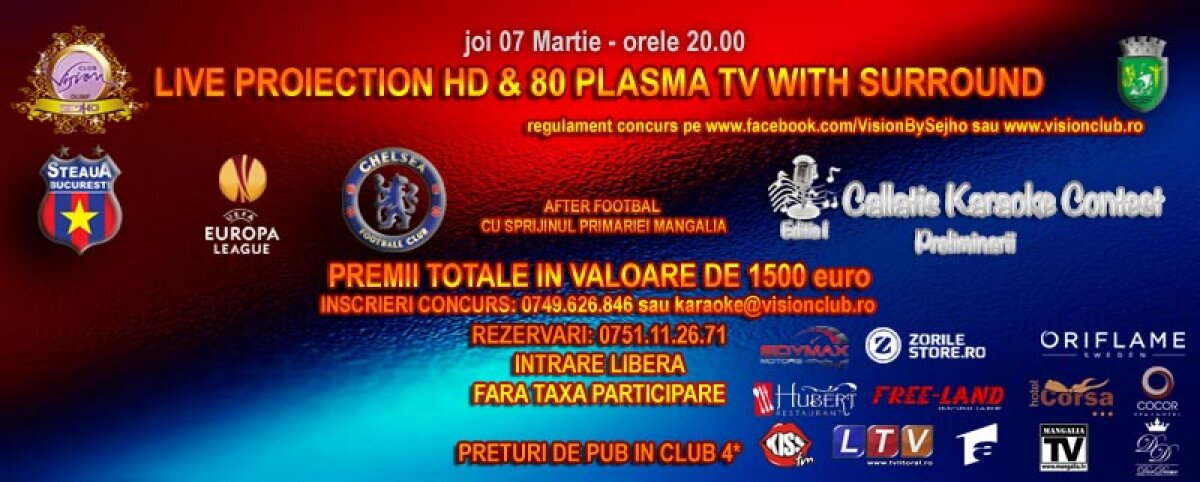 Şefii din VisionClub le promit clienţilor discounturi, coborînd preţurile la cele dintr-un pub normal. Steaua - Chelsea este în această seară, de la ora 20:00, în direct la Digi 1, Dolce 1, ProTV şi liveTEXT pe GSP.RO.