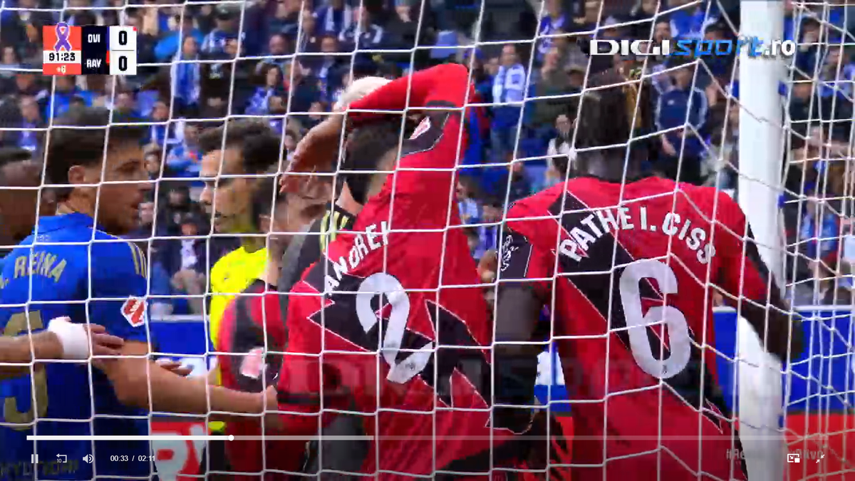 : Andrei Rațiu, moment tensionat în Oviedo - Vallecano // FOTO: captură Digi Sport