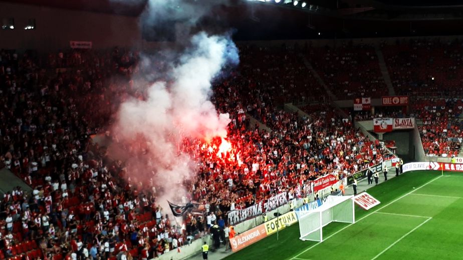 Fanii Slaviei au aprins torțe pe parcursul meciului:
