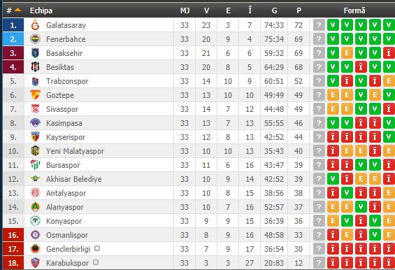 Kayserispor a ajuns la 4 înfrângeri consecutive și ocupă locul 9, cu 44 de puncte, înaintae ultimei etape.