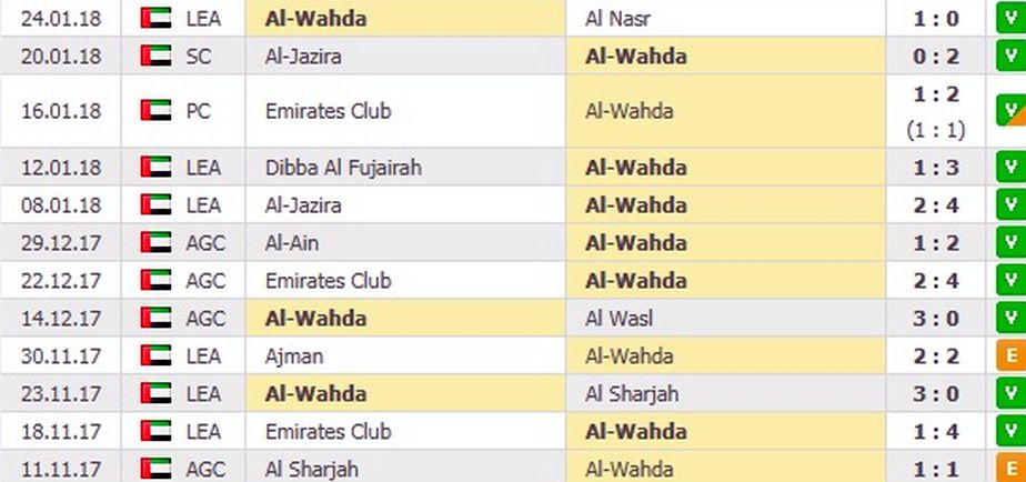 Succesul o ajută pe Al-Wahda să urce până pe locul 2 în campionatul Emiratelor Arabe Unite. Echipa lui Reghe e la doar două puncte de liderul Al-Ain.