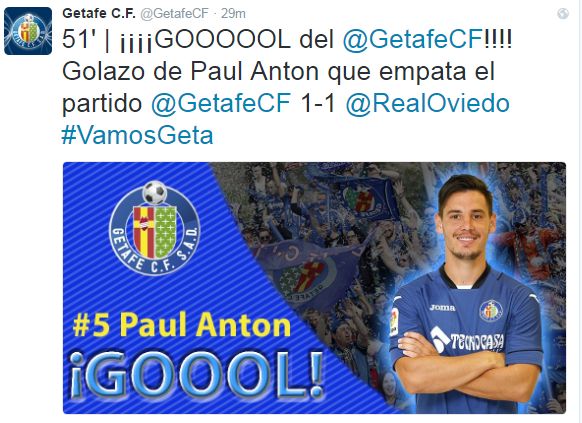 Anton a restabilit egalitatea în partida pe care echipa a disputat-o acasă în compania celor de la Real Oviedo. Partida s-a încheiat 2-1, goluri Torro 10, respectiv Anton 51 și Molina 83.