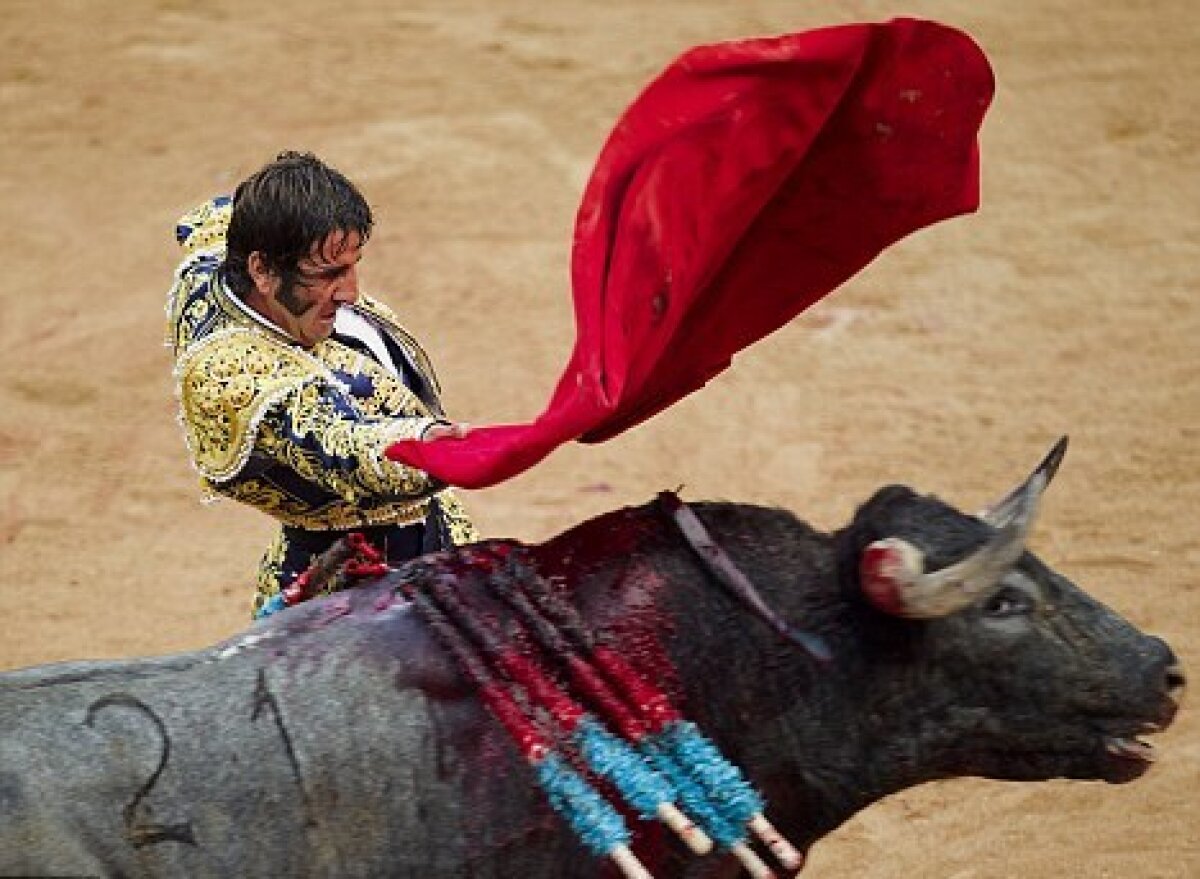 Imagini şocante la o coridă din Spania, în oraşul Zaragoza. Toreadorul Juan José Padilla şi-a pierdut vederea la ochiul stîng, după ce un taur i-a străpuns faţa cu cornul.