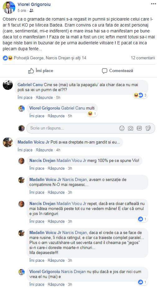 Cea mai recentă a venit de la Gabriel Cânu, fostul fotbalist și căpitan de la Poli Timișoara și FC Vaslui, care a comentat la postarea de pe Facebook a jurnalistului Viorel Grigoroiu.