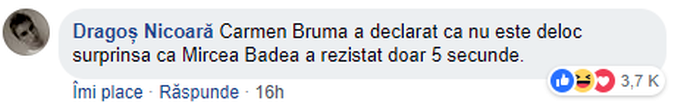 Un user care a comentat la o postare pe Facebook a strâns peste 3.700 de like-uri la o glumă indecentă cu Carmen Brumă, soția lui Mircea Badea: