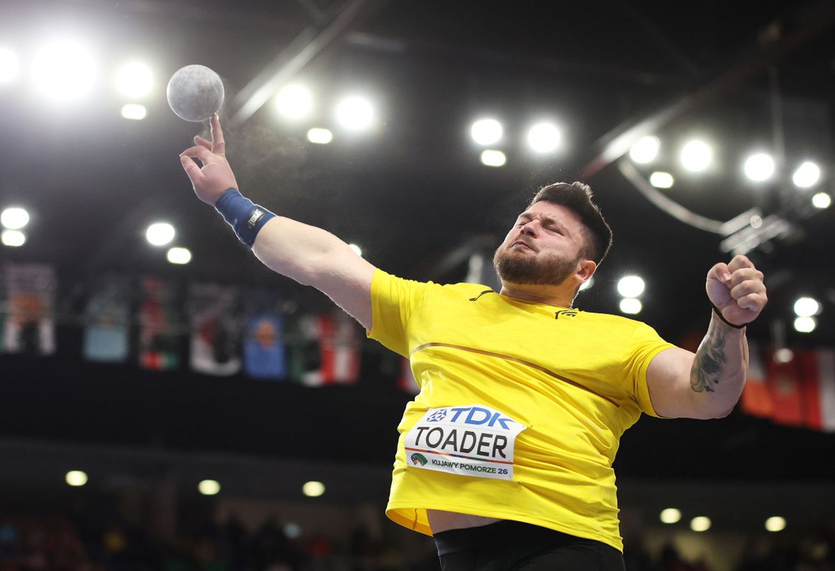 Campion european în sală anul trecut, Toader a fost eliminat din finala de la Torun după trei aruncări. El a început concursul cu o aruncare de 19,48 m, a doua a fost de 19,91 m și a treia de 19,00 m. Când s-a tras linie, el a fost al 12-lea. Anul trecut, la Nanjing, românul a fost al șaptelea, cu o performanță de 20,64 m. Recordul personal al românului este de 21,29 m.