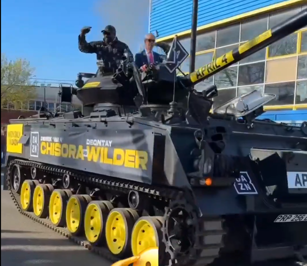 : Derek Chisora a venit cu tancul la conferință // Captură DAZN