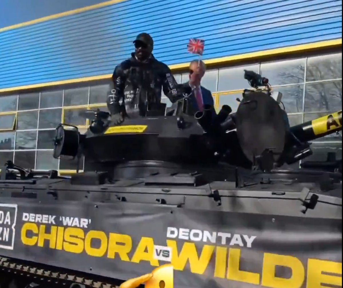 : Derek Chisora a venit cu tancul la conferință // Captură DAZN