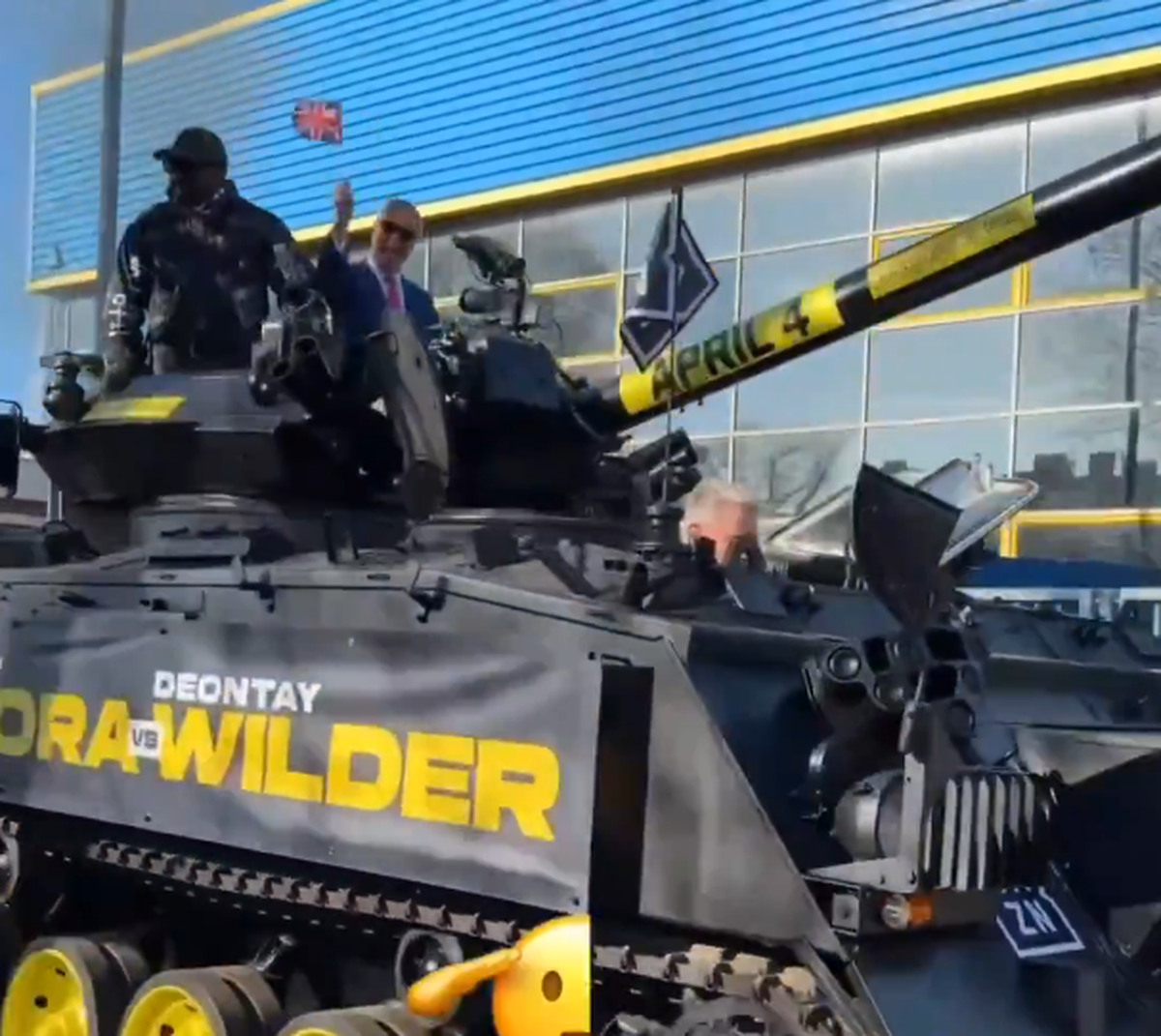 Foto 8/42 : Derek Chisora a venit cu tancul la conferință // Captură DAZN