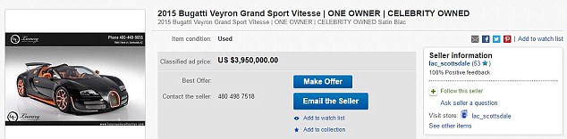 Americanul a cedat mașina către o firmă, care a pus anunț pe Ebay. Suma cerută pe bolid se ridică la 4 milioane de euro, iar cel care o va cumpăra va intra într-un club select, fiind doar 150 de astfel de mașini în lume.
