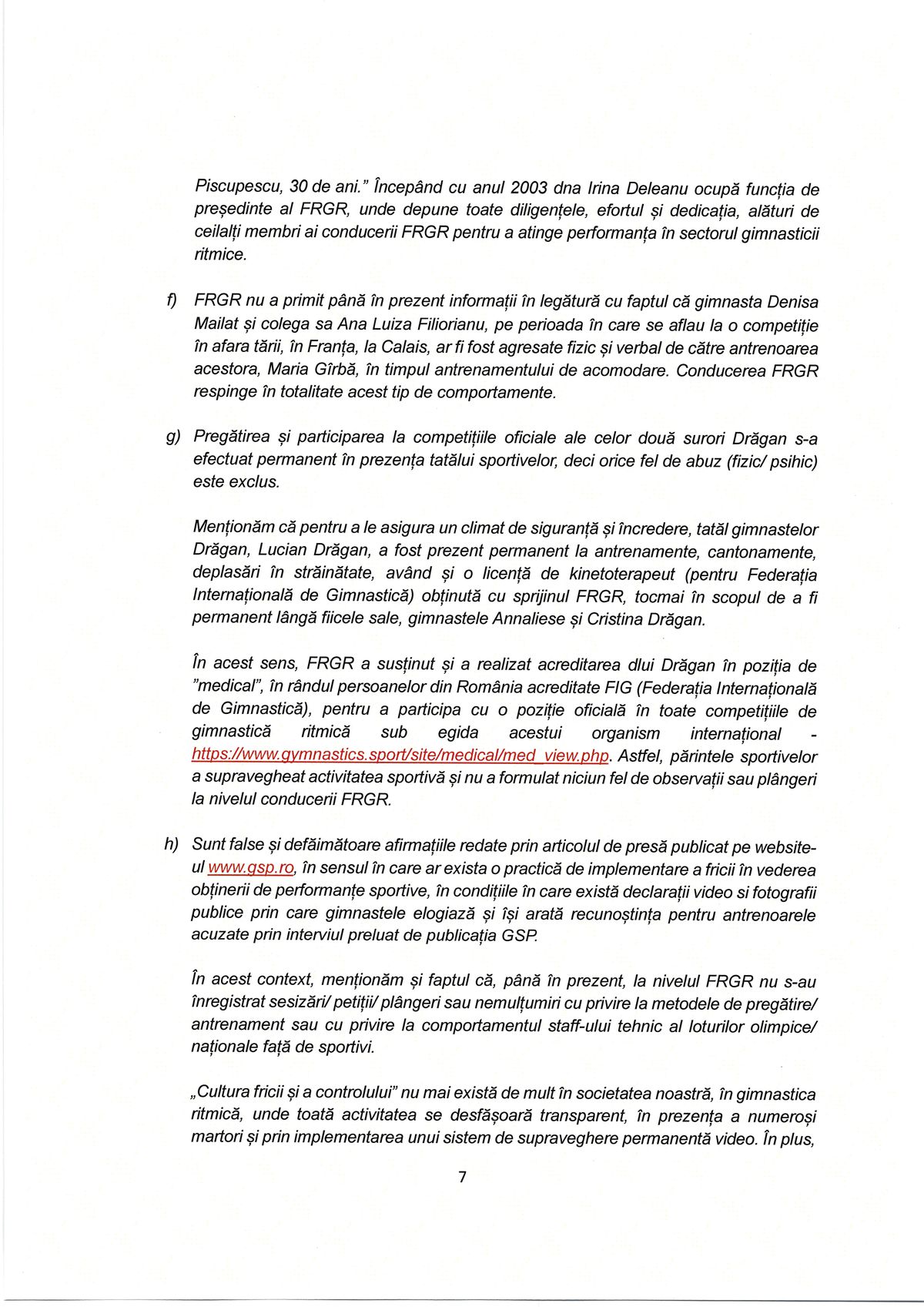 Comunicat FR Gimnastică Ritmică
