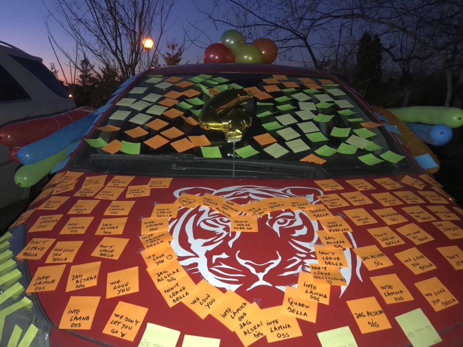Până atunci, după antrenamentul de joi seara, mai mulți fani români, din fan clubul "Team Bella", i-au făcut suedezei o surpriză. I-au împodobit mașina cu postit-uri pe care i-au scris diferite mesaje în suedeză, română și engleză: "Nu te lăsăm să pleci, Bella!", "Regina Bella!", "Te iubim!" sau "Bellissima, nu ne lăsa", au scris fanii pe câteva sute de bilețele. Au fost și baloane umflate, legate de oglinzile mașinii jucătoarei.