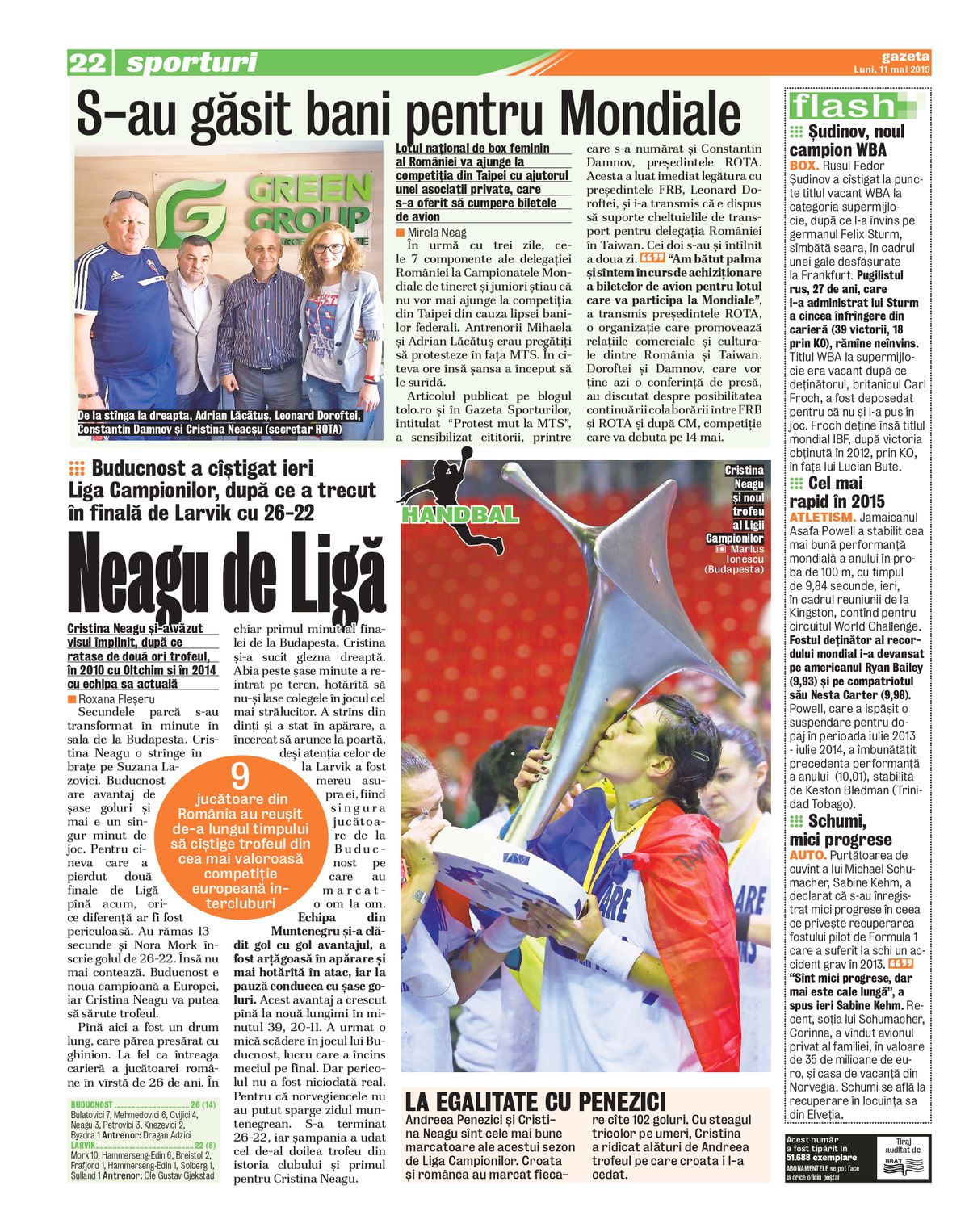 : Împlinirea visului Cristinei Neagu, acela de a câștiga Liga Campionilor, rflectat în paginile Gazetei Sporturilor