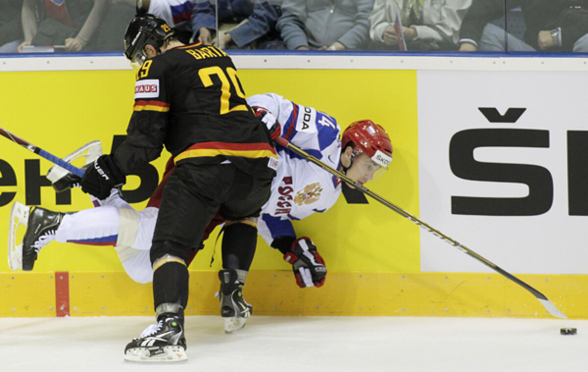Ruşii au fost învinşi, scor 0-2, de naţionala Germaniei, în primul meci al grupei A, în care se mai află reprezentativa ţării gazdă şi Slovenia. În grupa B, la Kosice, Elveţia a trecut după prelungiri de Franţa, cu 1-0.