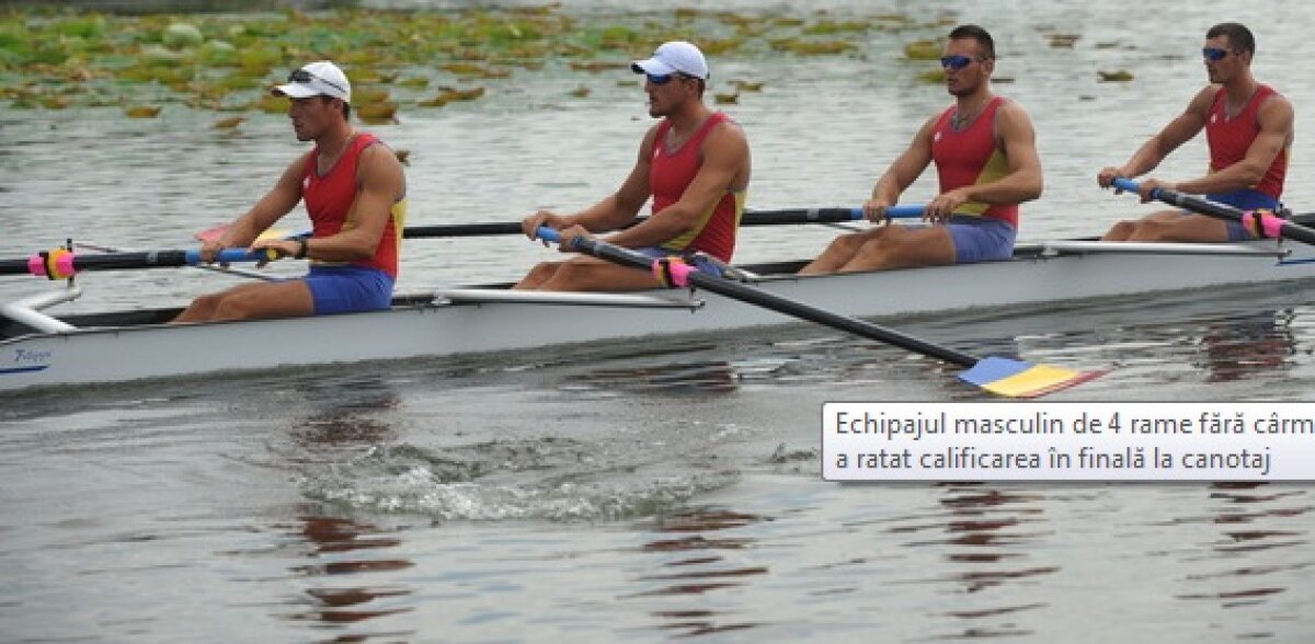 Echipajul masculin al României de 4 rame fără cîrmaci s-a clasat pe locul 6, ultimul, în finala B a probei olimpice. Marius Vasile Cozmiuc, Florin Curuea, George Palamariu şi Cristi Ilie Pîrghie au luat startul pe culoarul doi, alături de Serbia, Canada, Belarus, Italia şi Noua Zeelandă.
