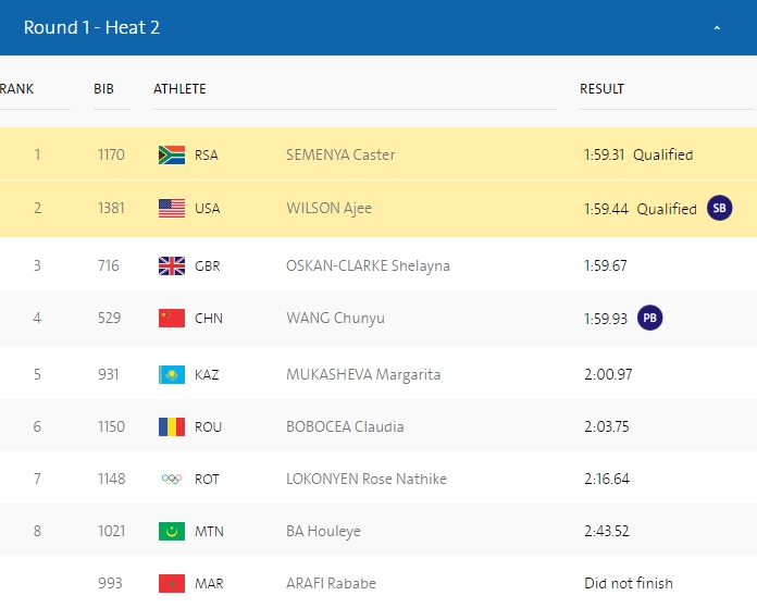 Claudia Bobocea a concurat și ea în calificările aceleiași probe și terminat cea de-a doua serie cu timpul 2:03:75, pe poziția a șasea.