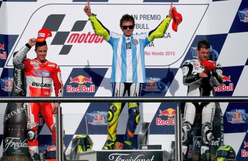 Rossi s-a impus în Marele Premiu al Argentinei, după o cursă incredibilă. A fost cea de-a 110-a victorie pentru "Il Dottore", care a sărbătorit în stil mare. A îmbrăcat tricoul Argentinei cu numărul 10 și cu numele lui Maradona pe spate și a cîntat un refren celebru în toată lumea, lansat cu mulți ani în urmă de fanii lui Napoli și dedicat fostului fotbalist argentinian (VIDEO, mai jos)