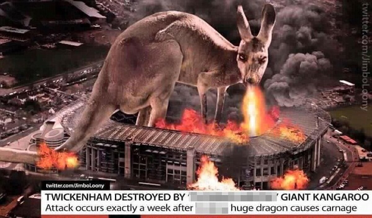 : Twickenham distrus de un cangur uriaș, trimitere la "wallabies"