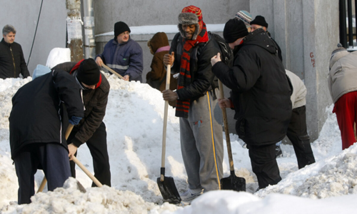 GALERIE FOTO Heirup prin zăpadă! » Rugbiştii şi baschetbaliştii au ajutat la deszăpezirea Bucureştiului