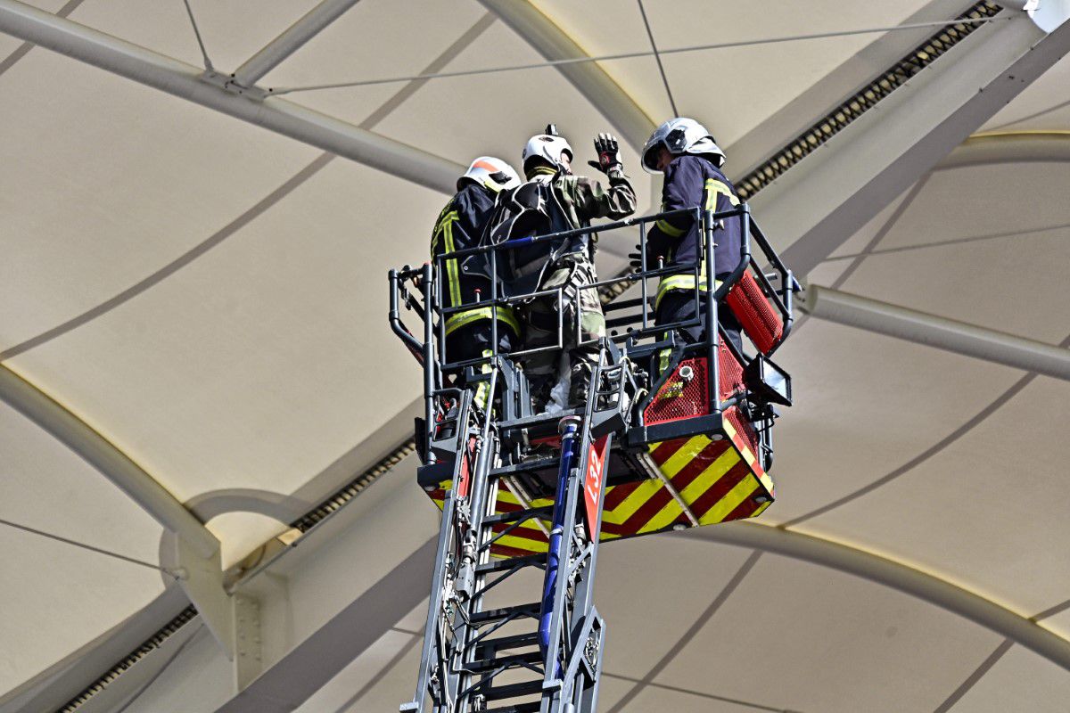 Scene uluitoare: parașutistul a rămas atârnat de acoperișul stadionului din Franța! Meciul a fost întârziat
