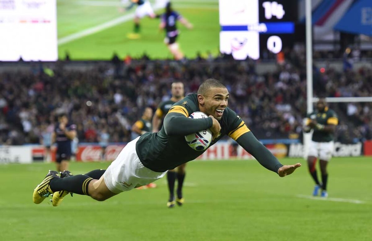 Bryan Habana, înscriind al treilea eseu al său contra SUA şi al 15-lea la World Cup // Foto: Reuters
