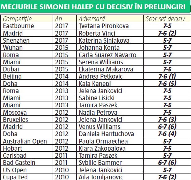 Fighter Girl. Așa a fost supranumită românca în 2015, după ce a câștigat două meciuri aspre la US Open 2015, cele cu Lisicki și Azarenka, atingând semifinalele. Nu au fost rarități, dimpotrivă, Simona și-a arătat puterea de luptă și înainte, dar și după, în partide care au ajuns în set decisiv, îmbibate de dramă și efort. Pe unele și le-a adjudecat, pe altele nu. Pe unele le-a întors, în altele a fost ea victima revenirii adversarei.