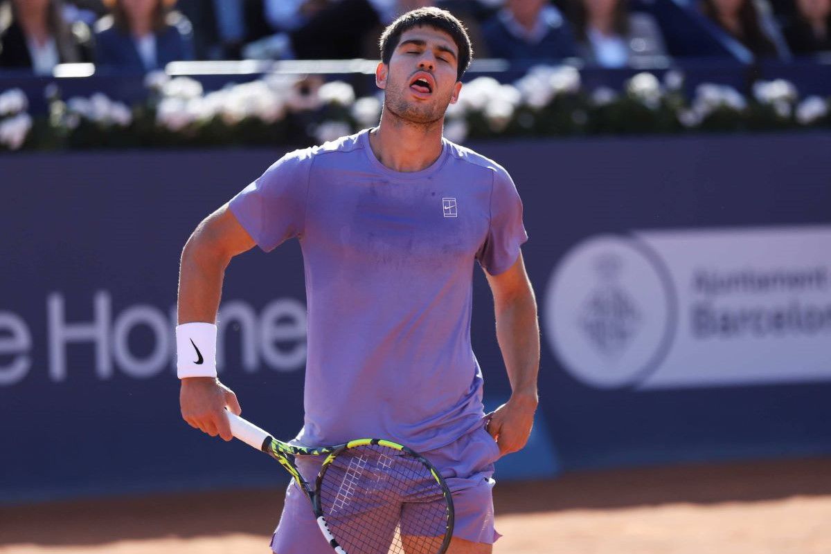 În ziua finalei de la Barcelona, pierdută în fața danezului Holger Rune, 6-7 (6), 2-5, nimic nu prevestea că Alcaraz nu va putea juca în turneul de la Madrid. A acuzat însă o durere la coapsa dreaptă în timpul meciului, a chemat fizioterapeutul, însă a dus partida până la final. În același timp, randamentul său fizic în setul secund a fost vizibil diminuat.