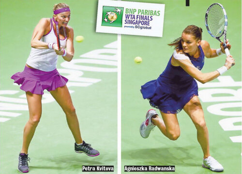 Spectatorii de la Singapore au trăit o surpriză, dar nu se așteptau și ca al doilea meci să le ofere același meniu. Petra Kvitova s-a calificat în semifinale, după ce Lucie Safarova a învins-o pe Angelique Kerber în ultimul meci al Grupei Albe. Ieri, ea a trecut de Maria Șarapova cu 6-3, 7-6(3), după ce rusoaica a condus cu 5-1 în setul al doilea. "Nu am intrat pe teren gîndindu-mă că O, Doamne! joc cu Maria, ce o să mă fac? Nu aveam nimic de pierdut. Eram foarte relaxată și am făcut un joc bun", a spus cehoaica. Scorul întîlnirilor directe dintre Petra și Aga este 6-2. Kvitova a mai jucat o finală la Turneul Campioanelor pe care a și cîștigat-o în 2011, iar Aga e la prima ispravă de acest gen.
