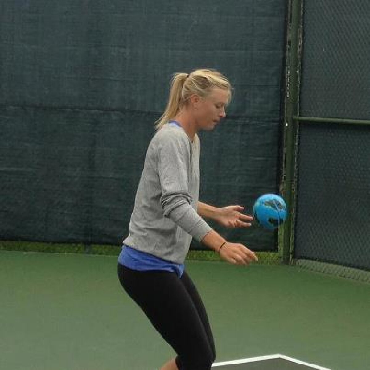 Nu prea bine, după cum ea însăşi recunoaşte! Pe pagina personală de Facebook, Şarapova a postat o fotografie în care jonglează cu mingea, plus textul ”lucrez acum la aptitudinile mele în fotbal, dar fără speranţă”.