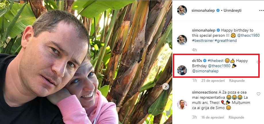 Darren Cahill, fostul partener al celor doi, a comentat la postarea Simonei Halep, lăsând, la rândul lui, un mesaj pentru Teo Cercel: „Cel mai bun. La mulți ani, Teo Cercel!”