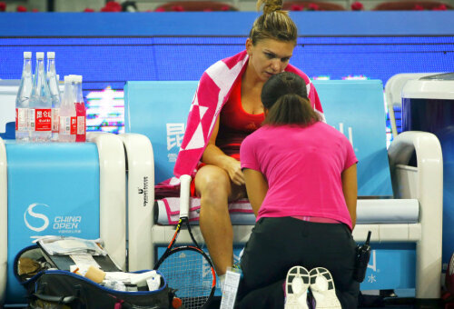 Simona Halep a abandonat meciul din primul tur de la China Open cu Lara Arruabarrena la scorul de 5-4 pentru adversară din cauza unei accidentări.