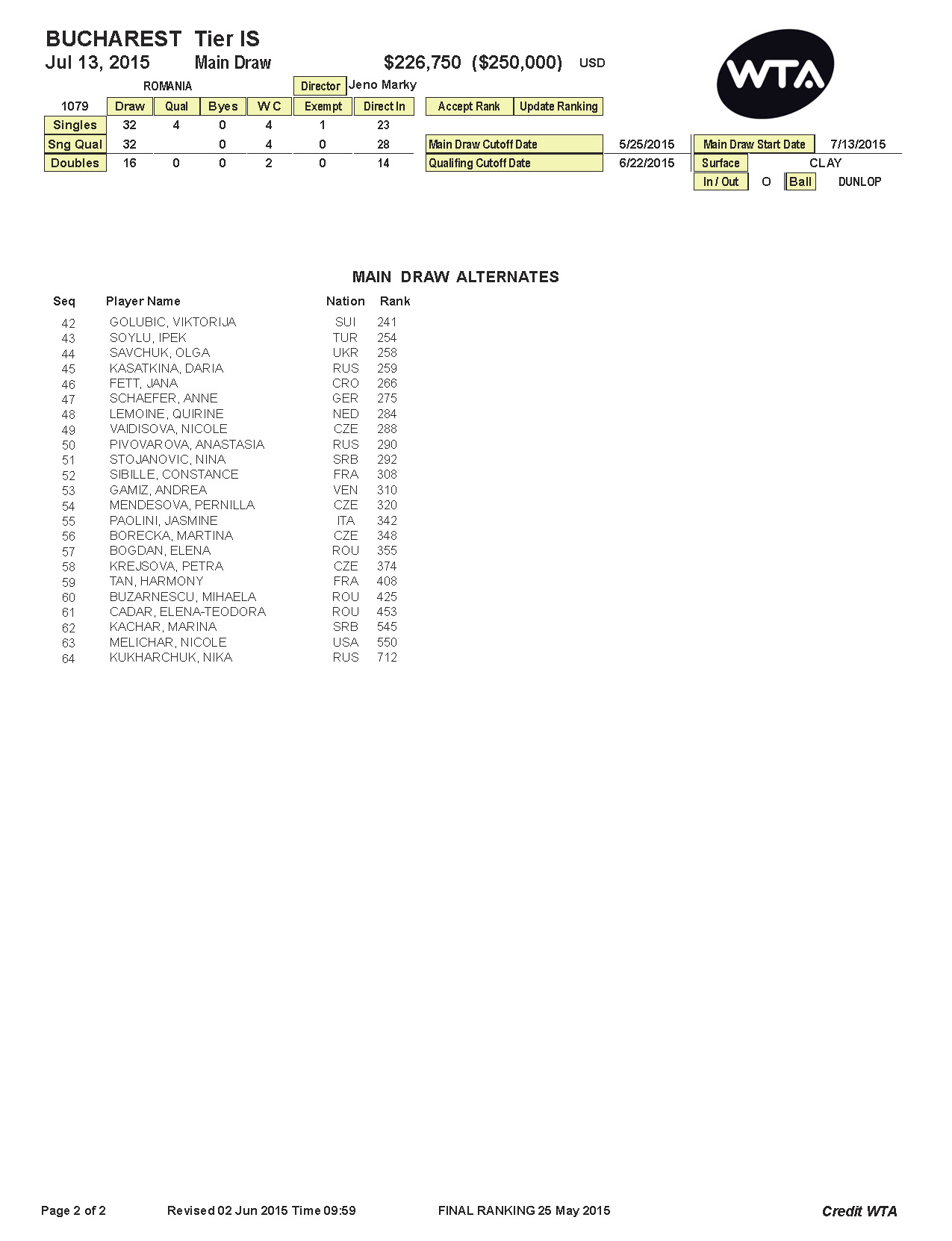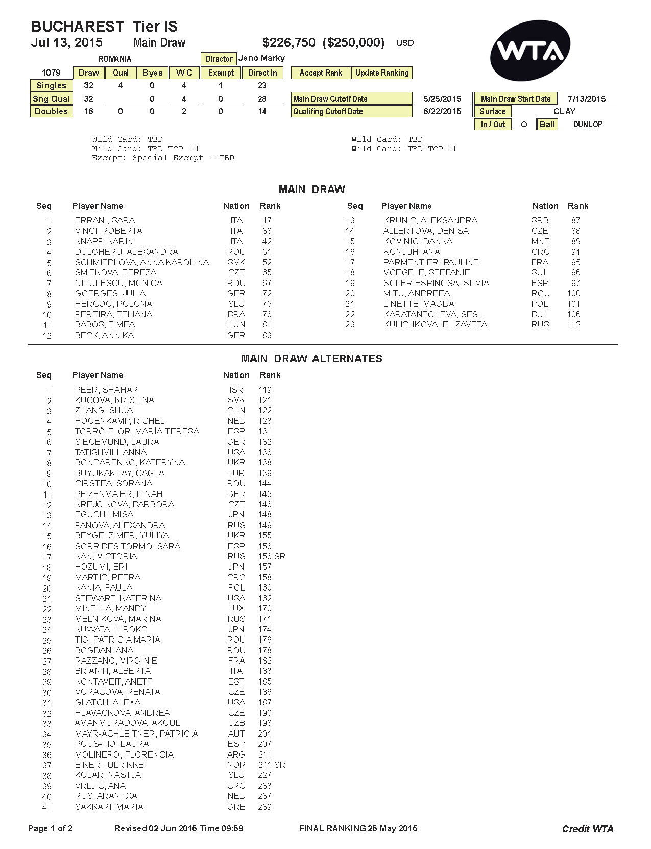 "Printre invitațiile pe care FRT le oferă anul acesta, una va ajunge la Sorana Cîrstea. Totodată, WTA are posibilitatea să ofere încă o invitație unei jucătoare de top. Sperăm ca aceasta să ajungă la Simona Halep, care ar avea astfel șansa să-și apere titlul cîștigat în 2014"