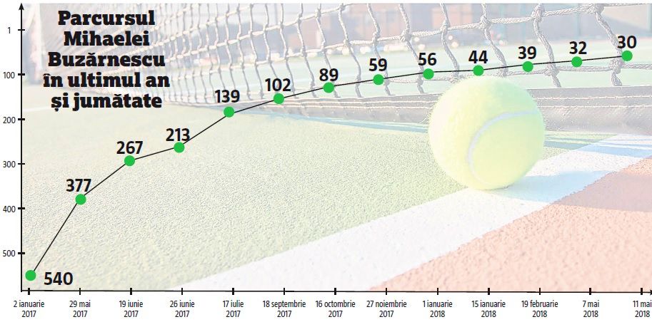 Să câștige meciuri, să avanseze în clasament. Iar când totul s-a legat, ascensiunea a fost aproape neîntreruptă. A străbătut în un an și jumătate drumul de la poziția 540 la 30. Unul dintre cele mai spectaculoase și surprinzătoare salturi. Pentru cei care nu-i știau jocul și ambiția.