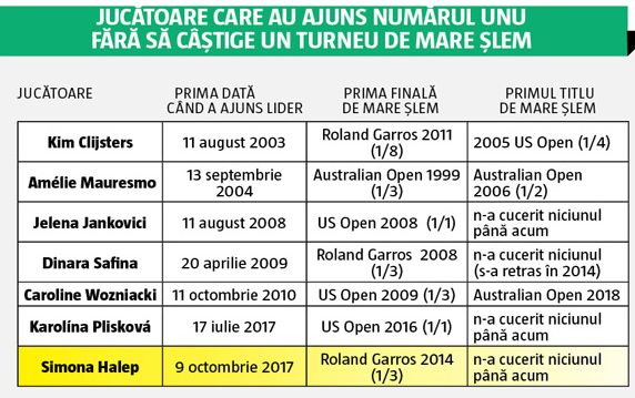 Simona Halep este primul număr unu mondial în circuitul feminin care vine din România. La masculin, Ilie Năstase a fost cel care a deschis era computerizată a ierarhiei mondiale masculine, el adunând 40 de săptămâni în această poziție începând cu 23 august 1974.